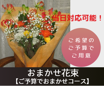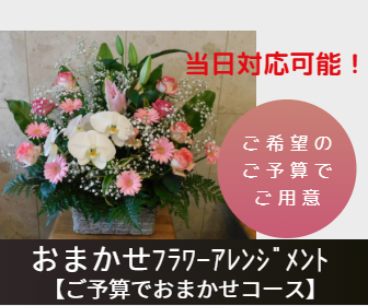 【人気!】商品はカタログ商品の他に、お客様のご予算に応じて、当店に入荷いたしました新鮮な季節のお花を使い、お作りする「おまかせ商品」もございます。