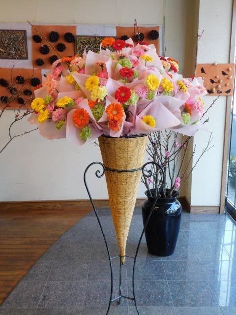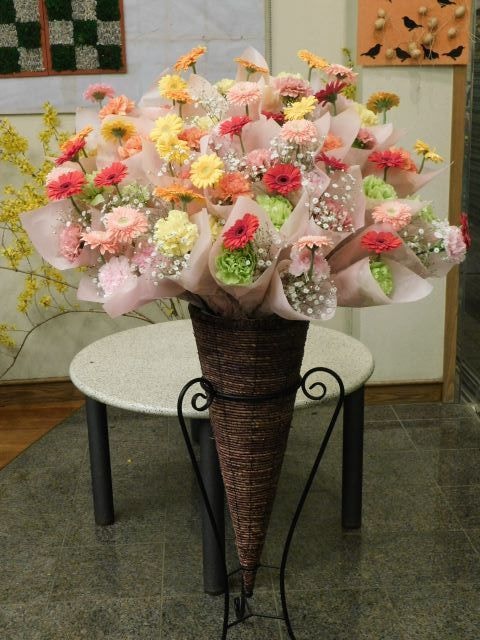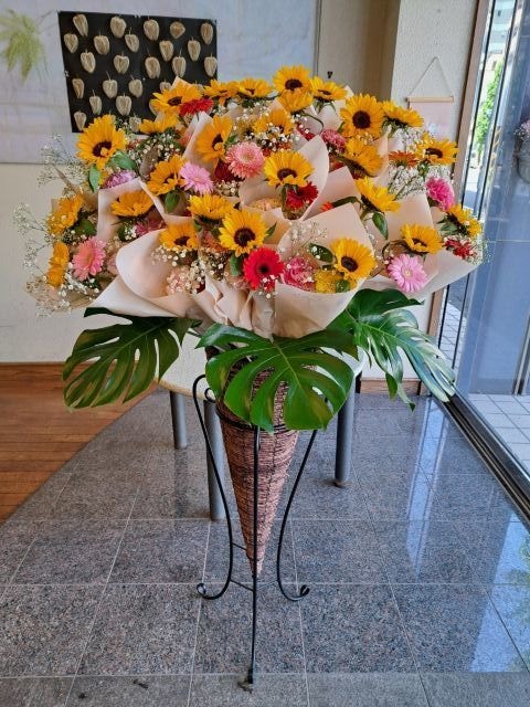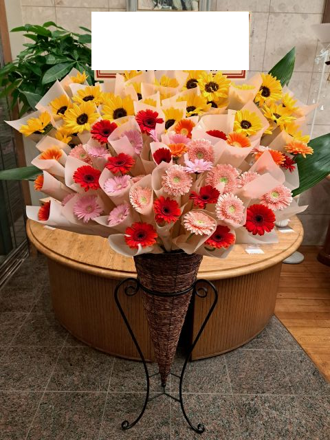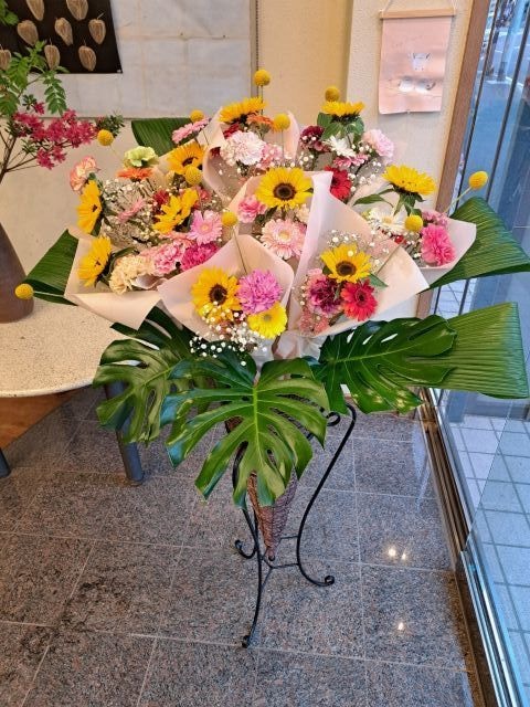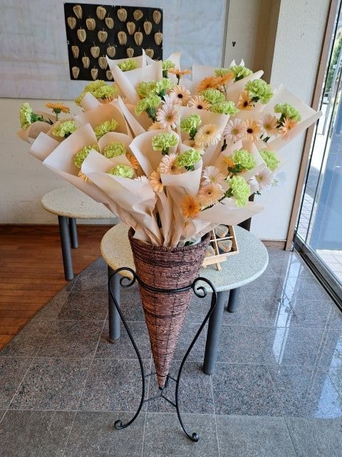 分けられるスタンド花【シェアスタンド花】は小さな花束としてお持ち帰り頂けます。ダンスやピアノの発表会、またショールームなどでご来店のお客様へのプレゼントに最適です。ご希望のお花・色合い、ご予算に応じてご用意させて頂きます。お見積りをさせて頂きますので、お気軽にお電話やLINEなどでお問い合わせください。
