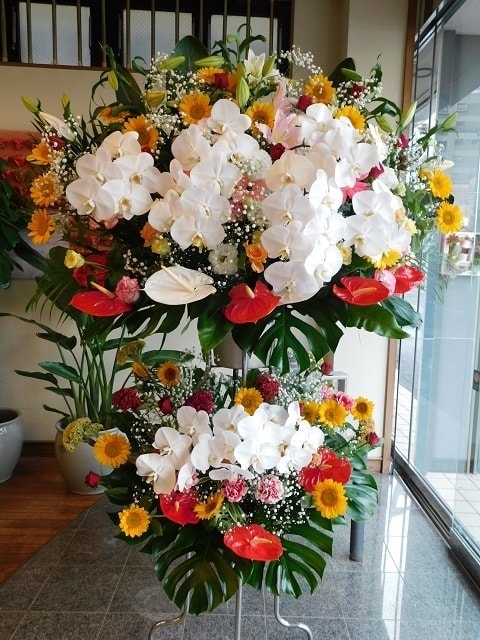 開店祝い・開業祝い・周年祝い・公演祝い・お誕生日などに豪華スタンド花を川崎周辺へ安心の自社便でお届け・設置いたします。なお、当日注文で当日配達可能です。クラブチッタ、カルッツかわさき、ミューザ川崎などへも送料無料でお届けいたします。また、蒲田周辺、鶴見周辺へのお届けも承ります。