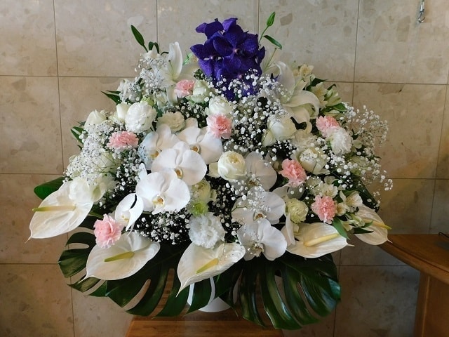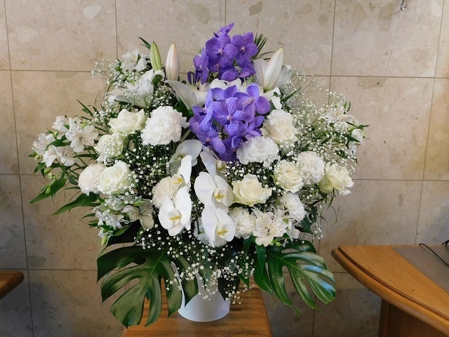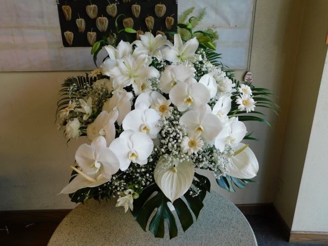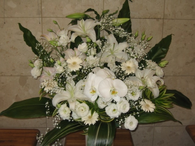 ご葬儀・密葬・家族葬(お通夜・告別式)の式場にお届けする「葬儀生花[お悔やみのお花](ご供花)」は最高品質の花材で格調高くお作りいたします。