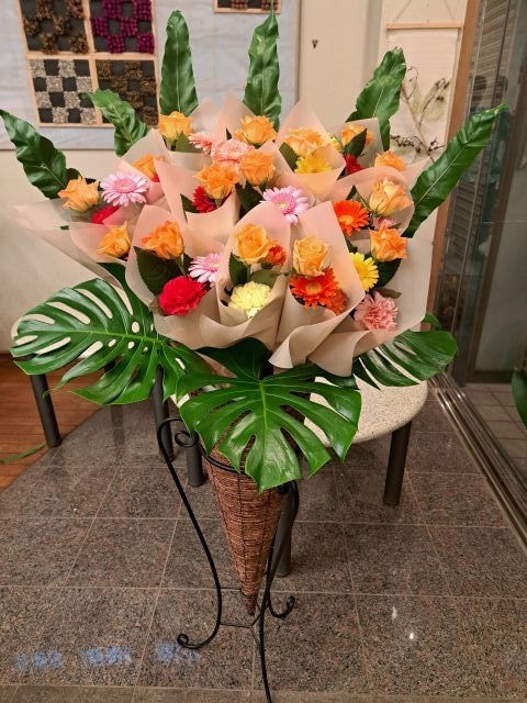 分けられるスタンド花【シェアスタンド花】は小さな花束としてお持ち帰り頂けます。ダンスやピアノの発表会、またショールームなどでご来店のお客様へのプレゼントに最適です。ご希望のお花・色合い、ご予算に応じてご用意させて頂きます。お見積りをさせて頂きますので、お気軽にお電話やLINEなどでお問い合わせください。